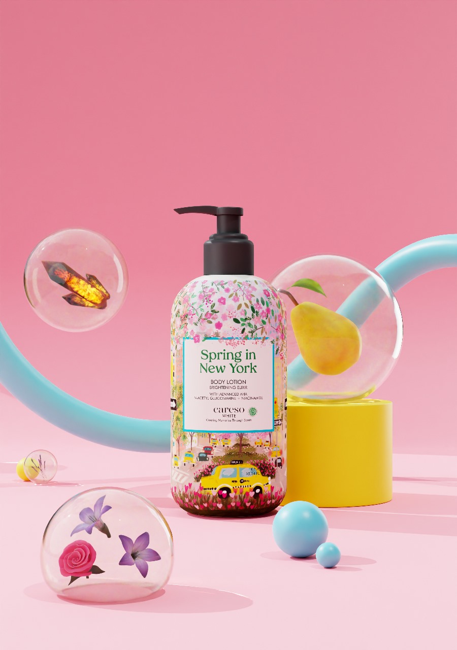 Wangi : Esens dari musim semi! Kesegaran buah pir yang matang berpadu dengan bunga Freesia yang baru mekar, diseimbangkan oleh Mawar, Amber, Nilam, dan Whitemusk.